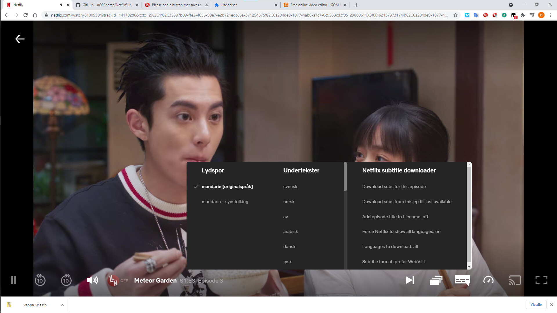 Allows you to download subtitles from netflix.